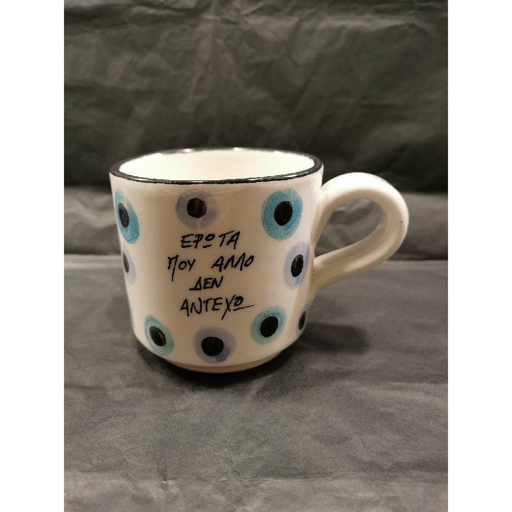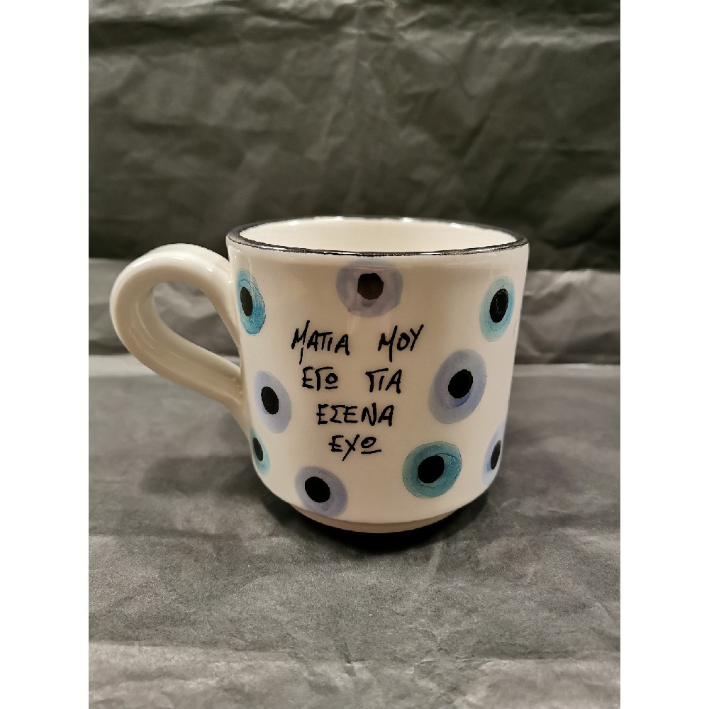 Χειροποίητη κεραμική κούπα. Χωρητικότητας: 300ml. Διαστάσεις: Διάμετρος: 9εκ.& Ύψος: 8εκ. Όλες οι κούπες είναι ζωγραφισμένες στο χέρι και μπορεί να υπάρχουν αποκλίσεις, όλα τα χρώματα από κοντά είναι λίγο πιο έντονα, είναι κατάλληλο για χρήση και μπαίνουν στο πλυντήριο πιάτων. ΧΡΟΝΟΣ ΠΑΡΑΔΟΣΗΣ: 10-20 Εργάσιμες μέρες